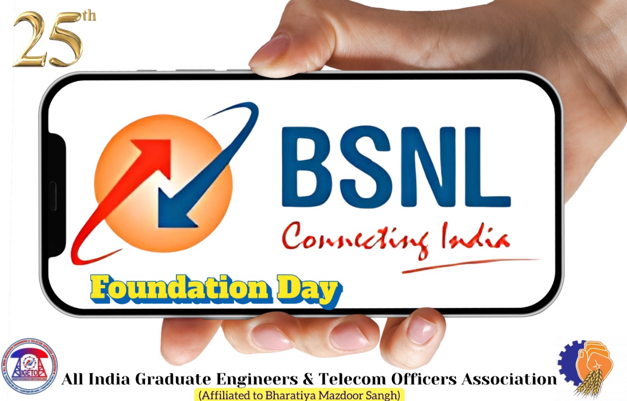 On this momentous occasion of BSNL’s 25th Foundation Day, I extend my heartfelt greetings to all the members of AIGETOA. This day marks a significant milestone in the journey of BSNL, a journey that has been defined by its employees’ resilience, service, and unwavering commitment.