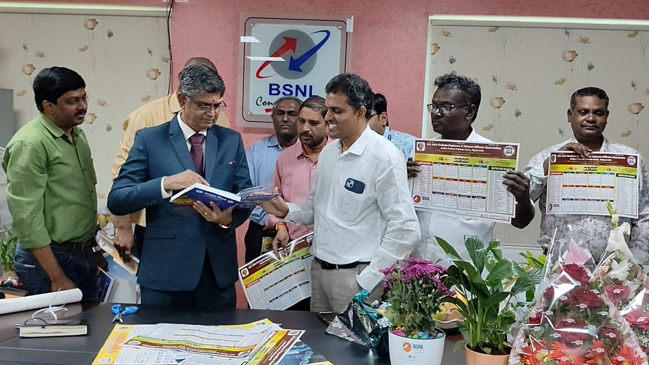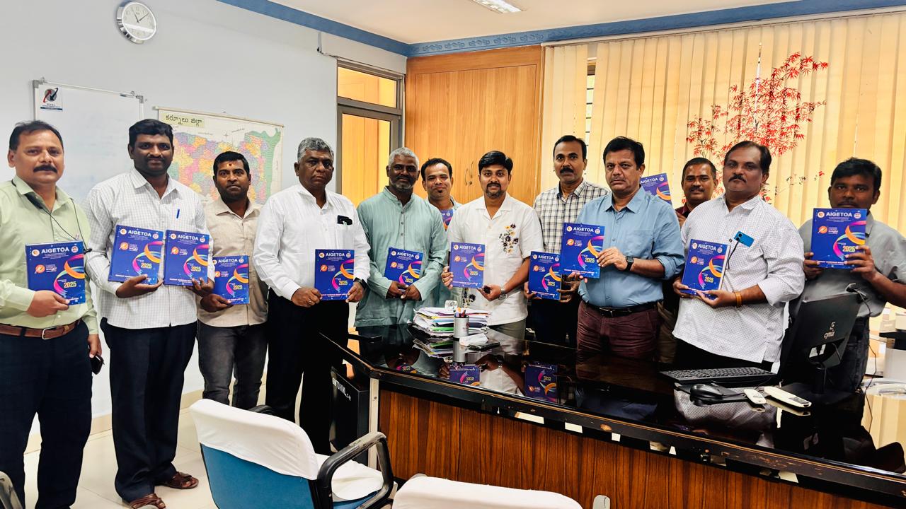 AIGETOA AP Circle is delighted to announce the successful inauguration of the AIGETOA Diary 2025, along with the wall and table calendars, on the very first day of the New Year. The event took place at the Circle Headquarters, Vijayawada, and was graced by the esteemed CGMT.
