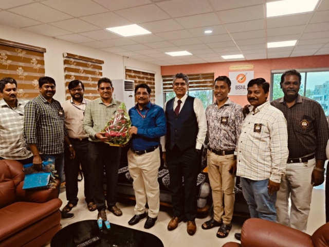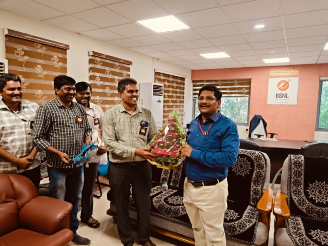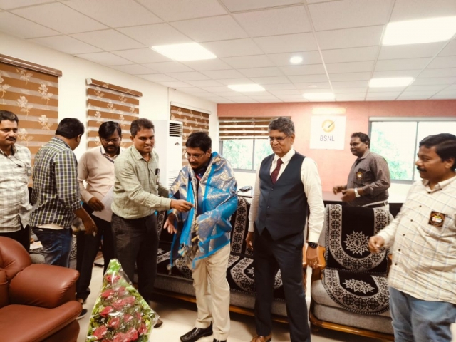 The AIGETOA AP Circle team had the privilege of welcoming Director (Enterprise Business), Shri. Papa Sudhakar Rao during his visit to Vijayawada, AP Circle. The team extended floral greetings and a shawl as a token of respect.